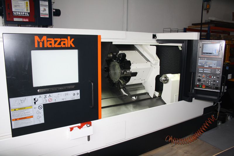 Derzeit steht uns für die Fertigung ein CNC Drehzentrum mit angetriebenen Werkzeugen zu Verfügung. Hierbei handelt es sich um eine CNC-gesteuerte Drehmaschine der neuen Generation, der Quick Turn Smart 300M von Mazak.| Datenblatt | |
